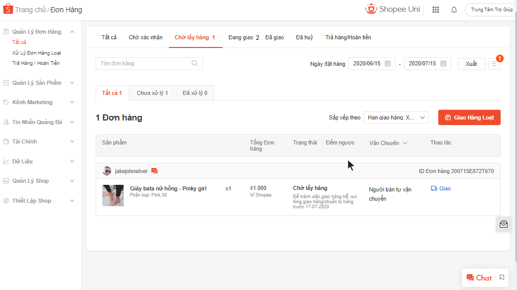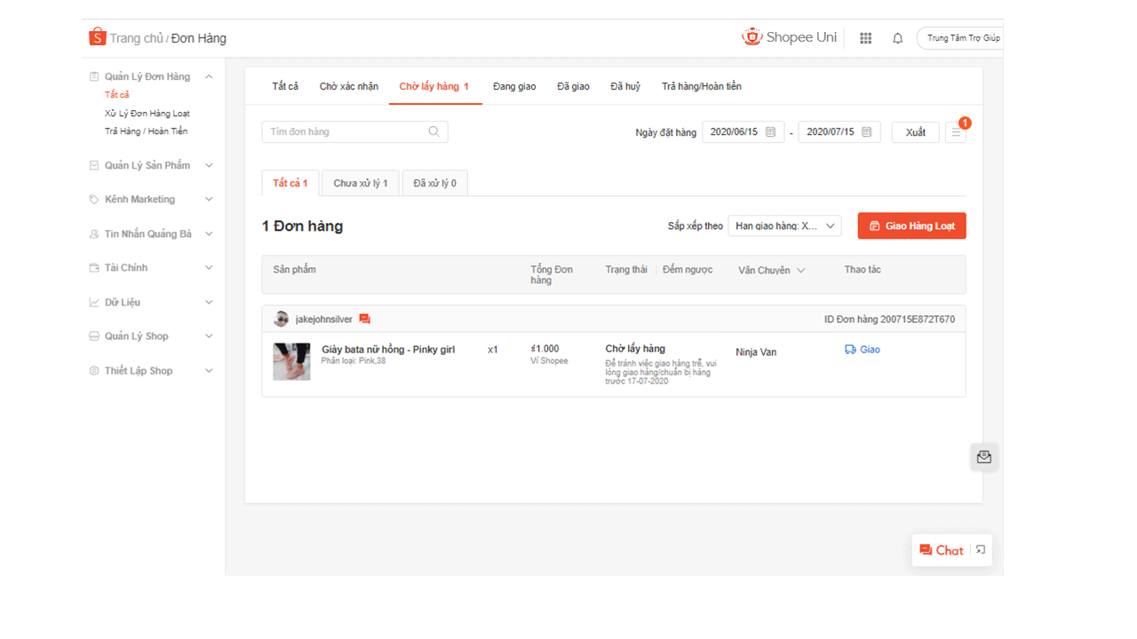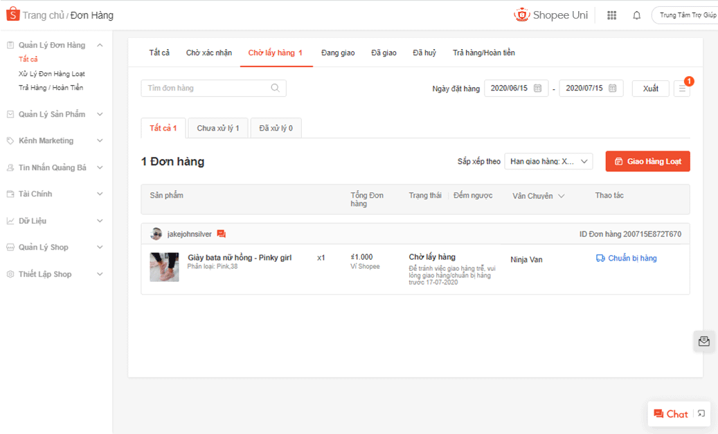 - Bước 1: Truy cập vào Kênh Người Bán > Dữ liệu