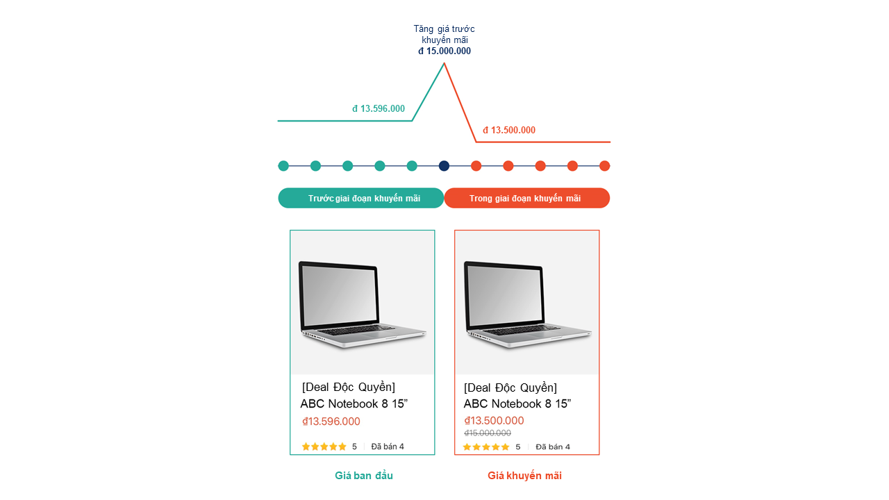 Chi tiết: Phòng đại khuyến mại bằng cách Tăng giá gốc trước khi tham gia chương trình khuyến mãi.